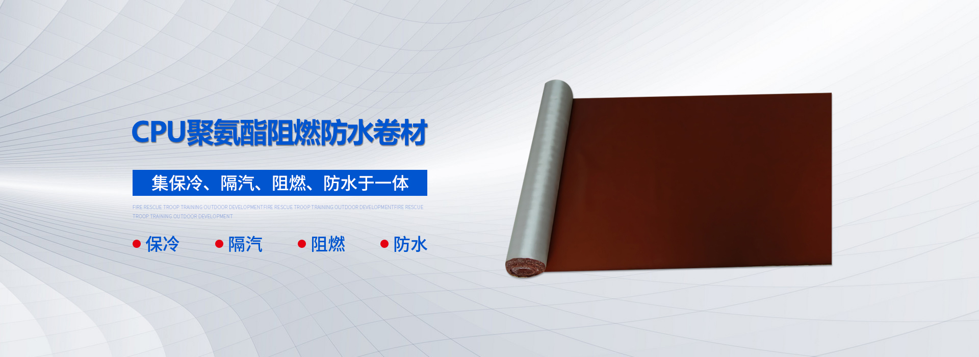 CPU系列彈性卷材以聚氨酯阻燃膠為主要原料,基層采用科學(xué)配方經(jīng)技術(shù)處理的增強(qiáng)布作胎基,在特殊的機(jī)械加工設(shè)備上復(fù)合CPU混合料,經(jīng)硫化、整理卷取等工序制成的高分子阻燃防水卷材。該產(chǎn)品及保冷、隔汽、阻燃、防水于一體,使用壽命長(zhǎng),其阻燃性能處于國(guó)內(nèi)領(lǐng)先水平,填補(bǔ)了國(guó)內(nèi)聚氨酯阻燃防水卷材的空白。